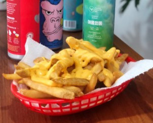 Tacos + fries, what else do we need to say to say?! Everyone loves tacos and everyone loves fries so together they form the perfect marriage! We deep fry fries (250 g) then pile on taco spiced ground beef (100 g) then top it off with fresh salsa, shredded cheese, diced onions, jalapeños, and chives with sour cream and creamy chipotle sauce drizzled on top.