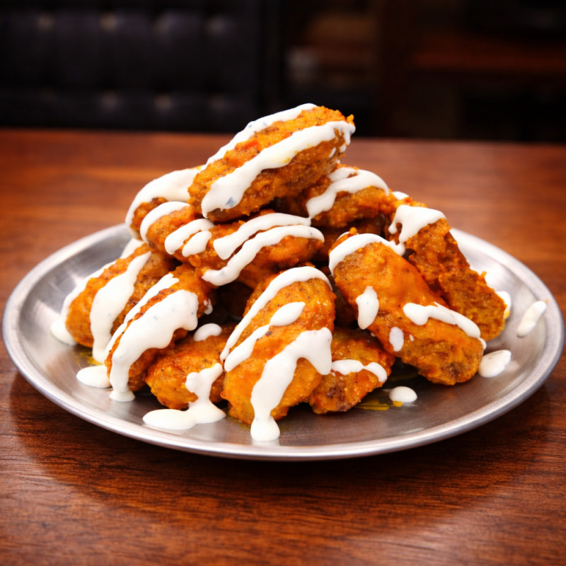 Each order gets a side of creamy ranch or bold blue cheese, adding an extra layer of flavor to every bite.