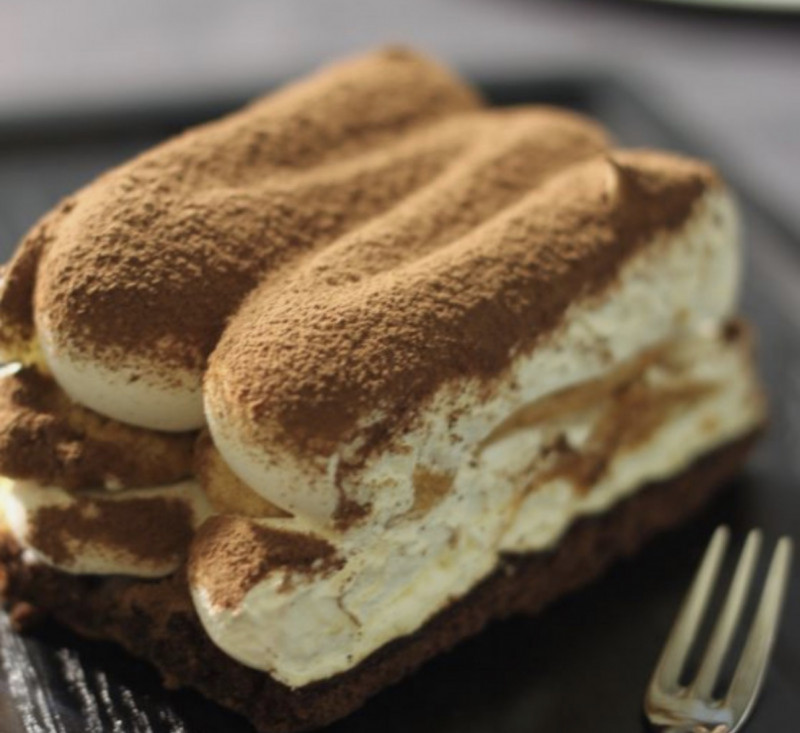 Natural-style fresh cream cake with a blend of custard and whipped cream, topped with cookies