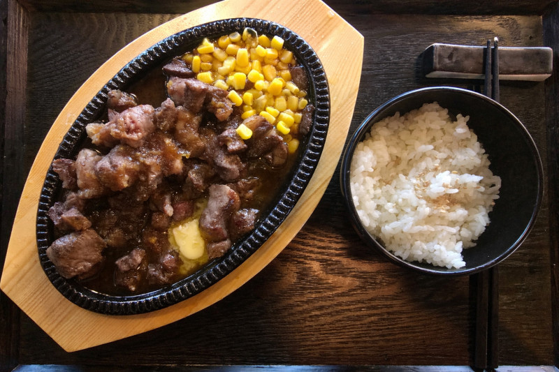 Stir-fried pork bulgogi marinated in traditional Japanese sauce served with rice and soup