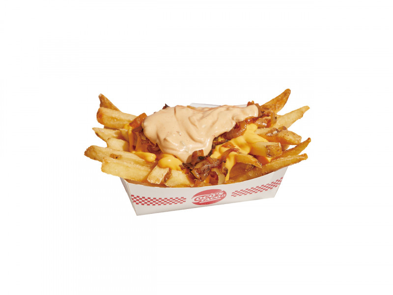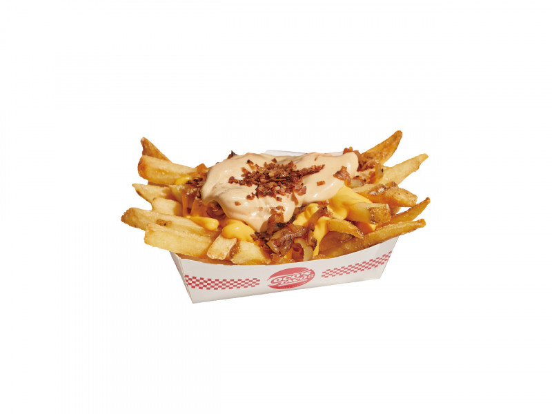 LA-style loaded fries topped with bacon for an even richer combination of fries, sauce, and crispy bacon