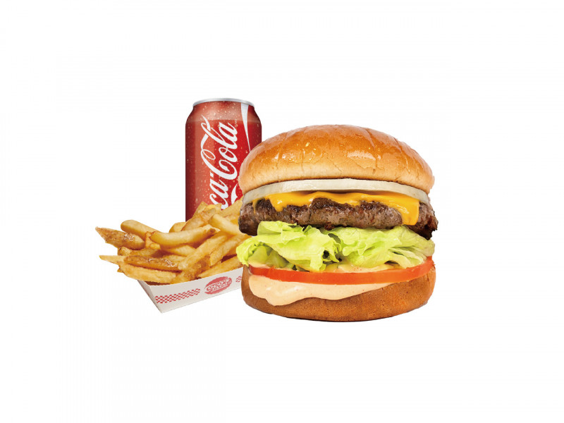 Classic cheeseburger combo with fries and drink, built on Coco's special patties with authentic flavor