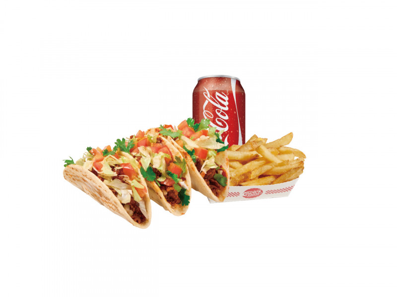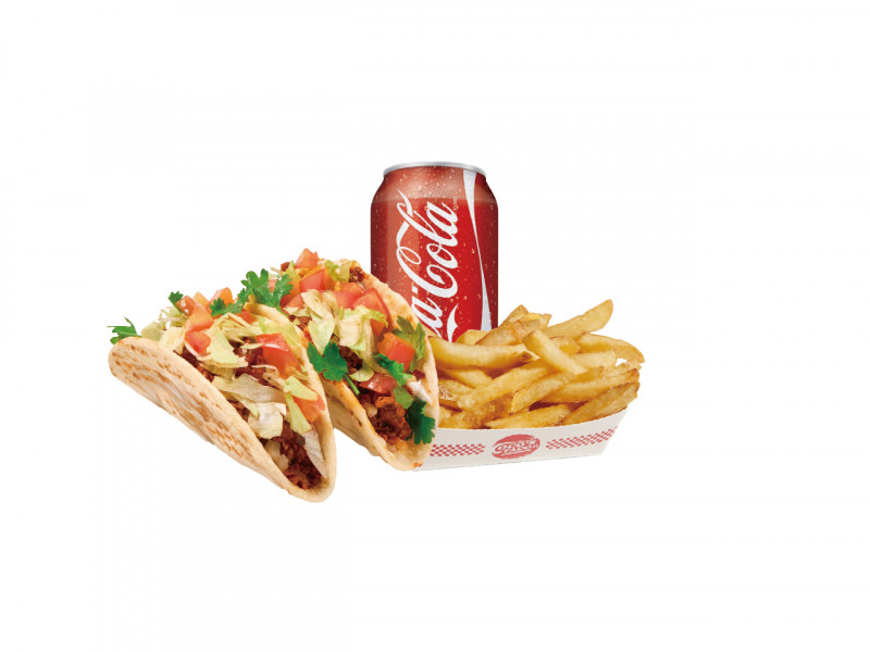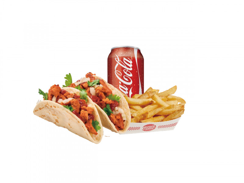 Chipotle-flavored tacos (2pcs) finished with fries and drink in a classic American-style combo